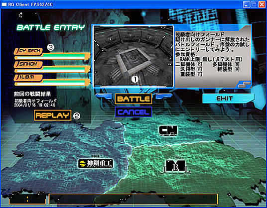 マップ選択及びエントリーボタン